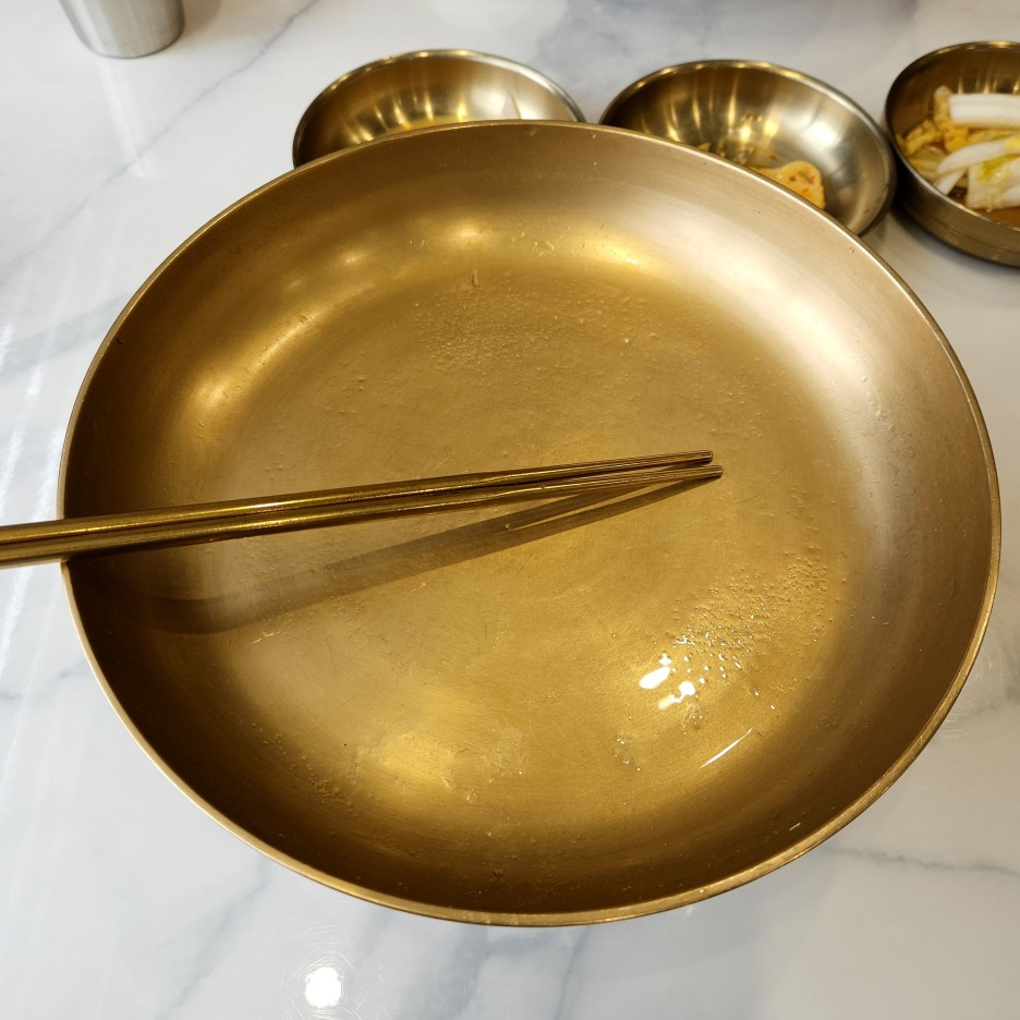지름이 상당히 넓은 그릇이라 엄청나게 양이 많다고 생각을 했는데, 옆으로 보니, 깊이가 거의 없는, 구멍 없는 신선로같이 생긴 그릇이었다. 양이 적을 것 같은 기분이 들기 시작한다. 하지만, 이건 오산이었다. 먹다 보니 면의 양이 상당했다.