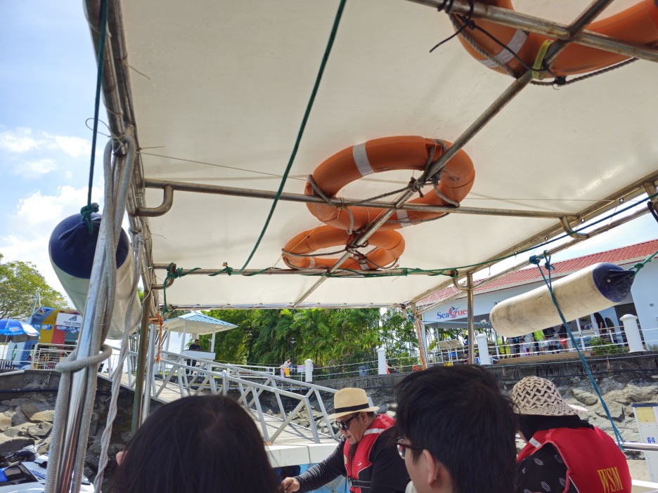 씨퀘스트 직원분이 돌아가는 시간에 맞춰 선착장 입구에서 기다리고 있었다. 잠시 후, 씨퀘스트 보트가 사피섬에 도착하고, 우리는 직원분의 안내를 받아서 무사히 보트에 탑승하고 다시 마젤란 수트라로 돌아왔다.