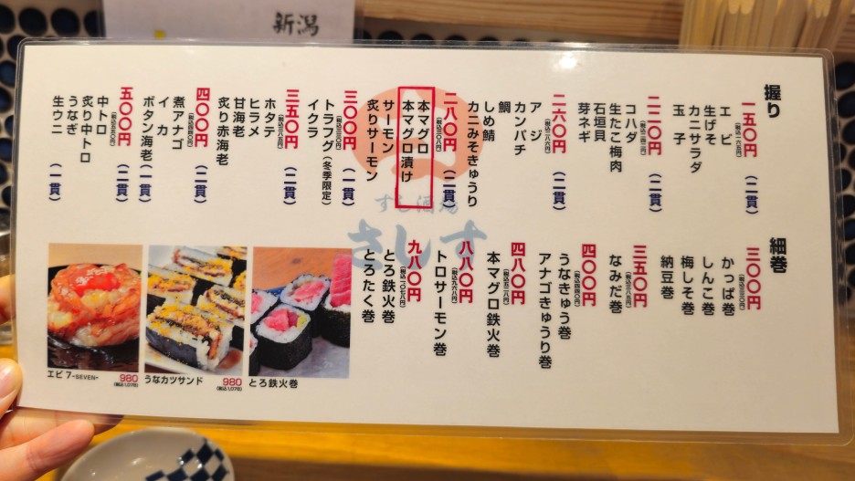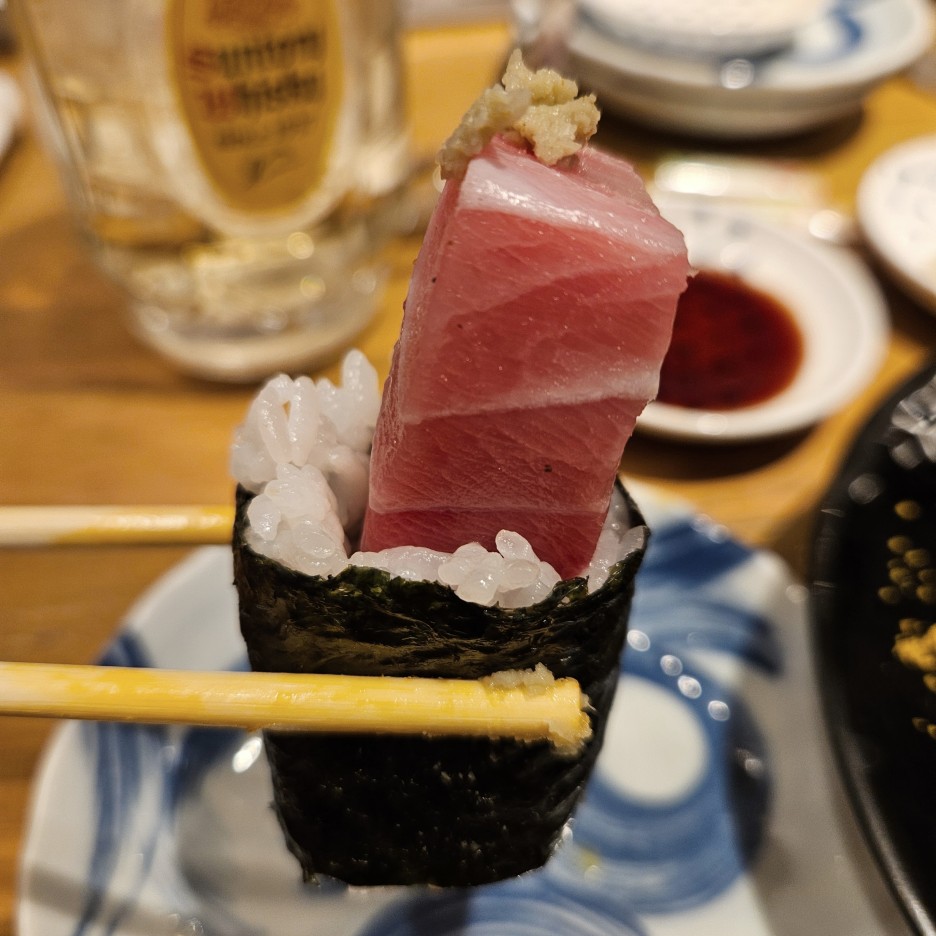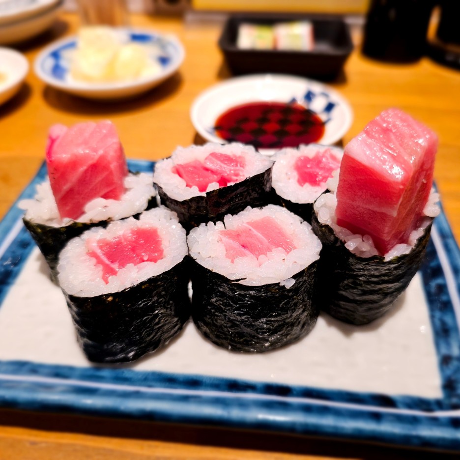 단, 뱃살이 아닌 500엔 정도의 일반 참치김말이도 있으니, 주의해서 주문하시길.