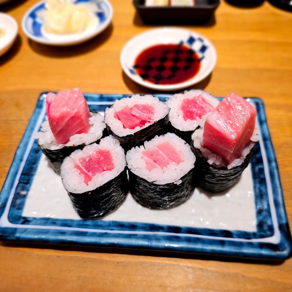 とろ鉄火巻き 토로 텟카 마키. 참치 뱃살이 들어간 김말이. 이거 정말 맛있다.