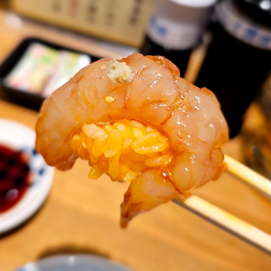 달달함이 스멀스멀 올라오는 새우회와 고소한 노른자. 그리고, 일본의 맛있는 쌀에 적절히 초를 가미한 밥.