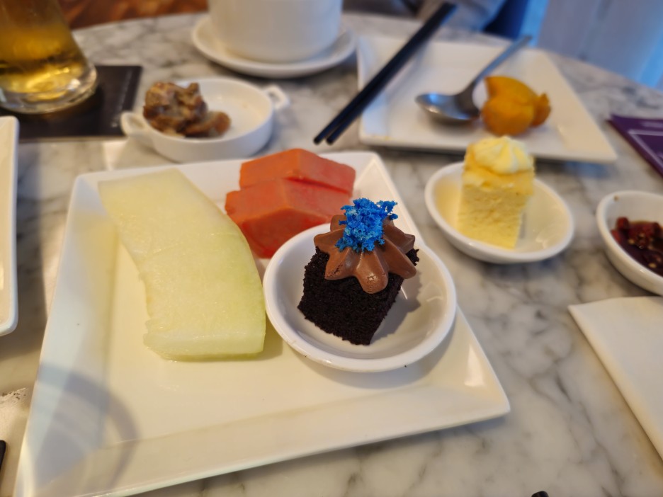 디저트도 먹는다. 과일이 맛있다.