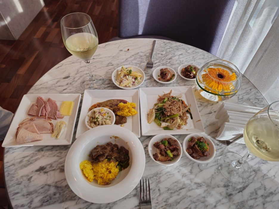 아마도 첫날의 한상 차림. 보시는 것과 같이 핑거 푸드가 많았다.