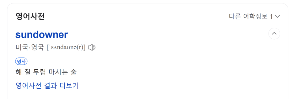 앞으로는 [Sundowner 선다우너] 라는 단어를 써서 남들 보다 돋보이고 싶다.
