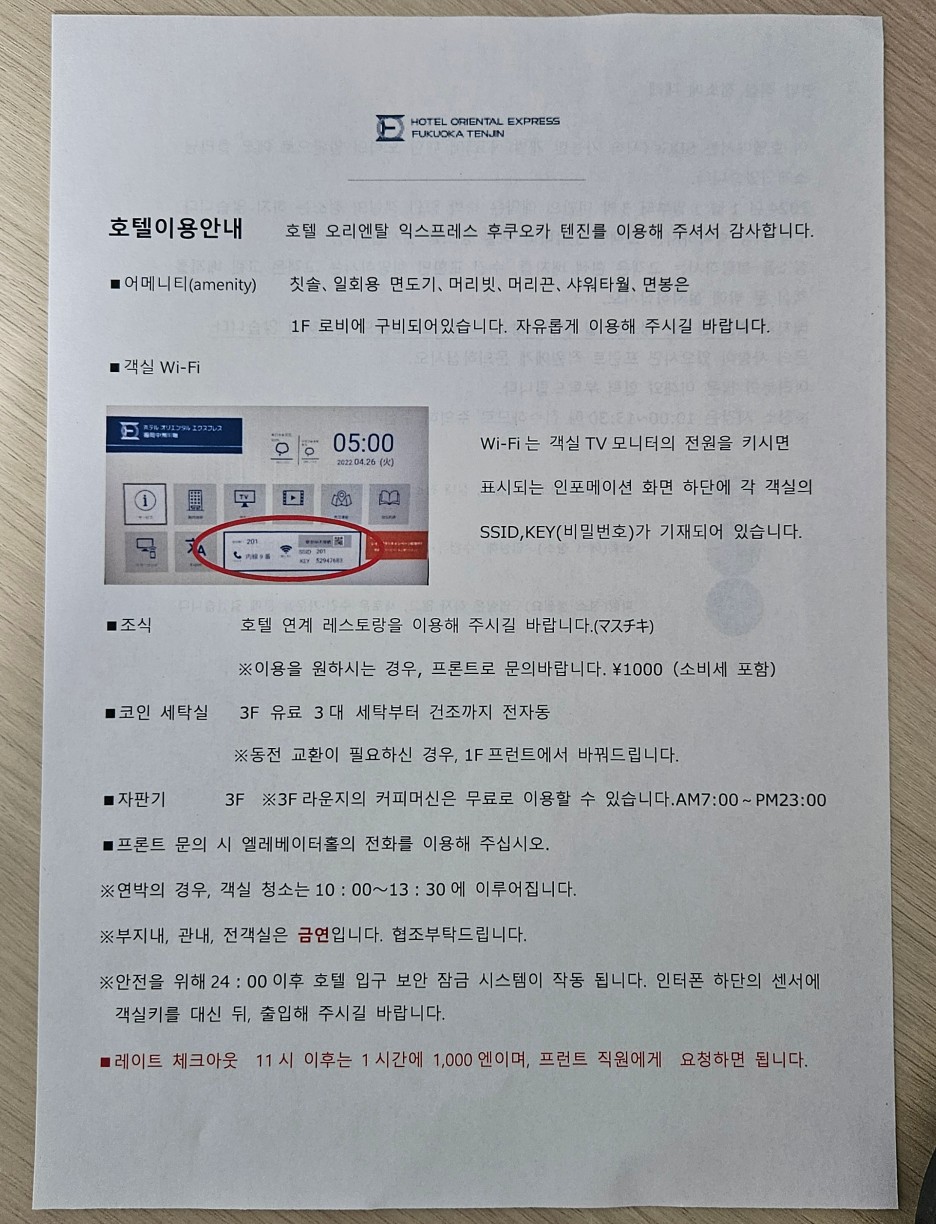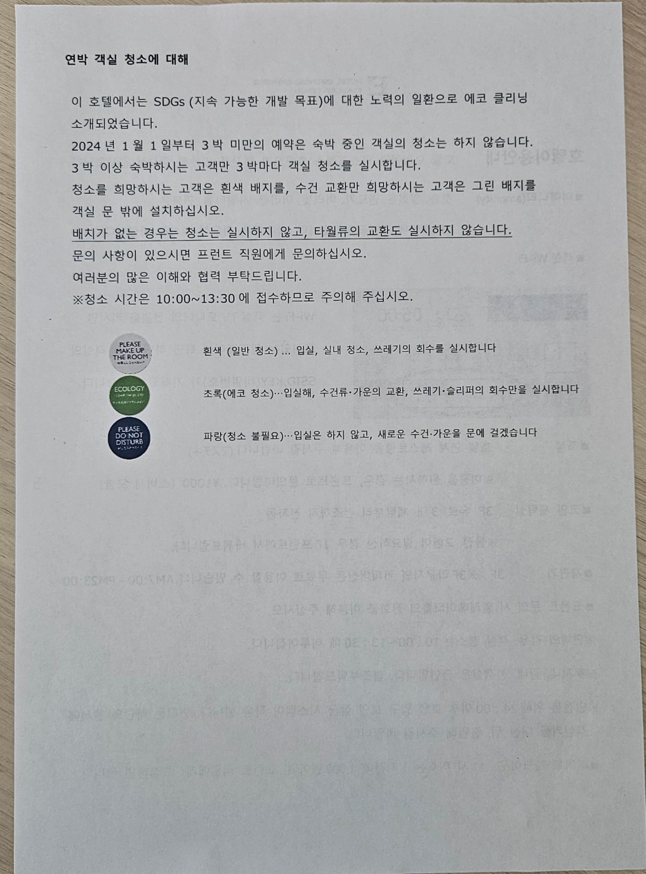 간단한 호텔 이용 안내서. 확인해 보시길.
