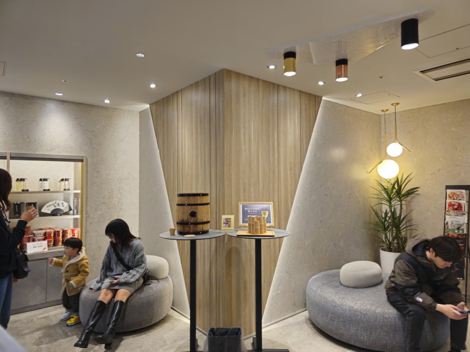 저녁 늦게 한번 방문해 보니, 대여섯 명의 숙박객이 편의점에서 사 온 간단한 음식을 먹거나 커피를 마시고 있었다.