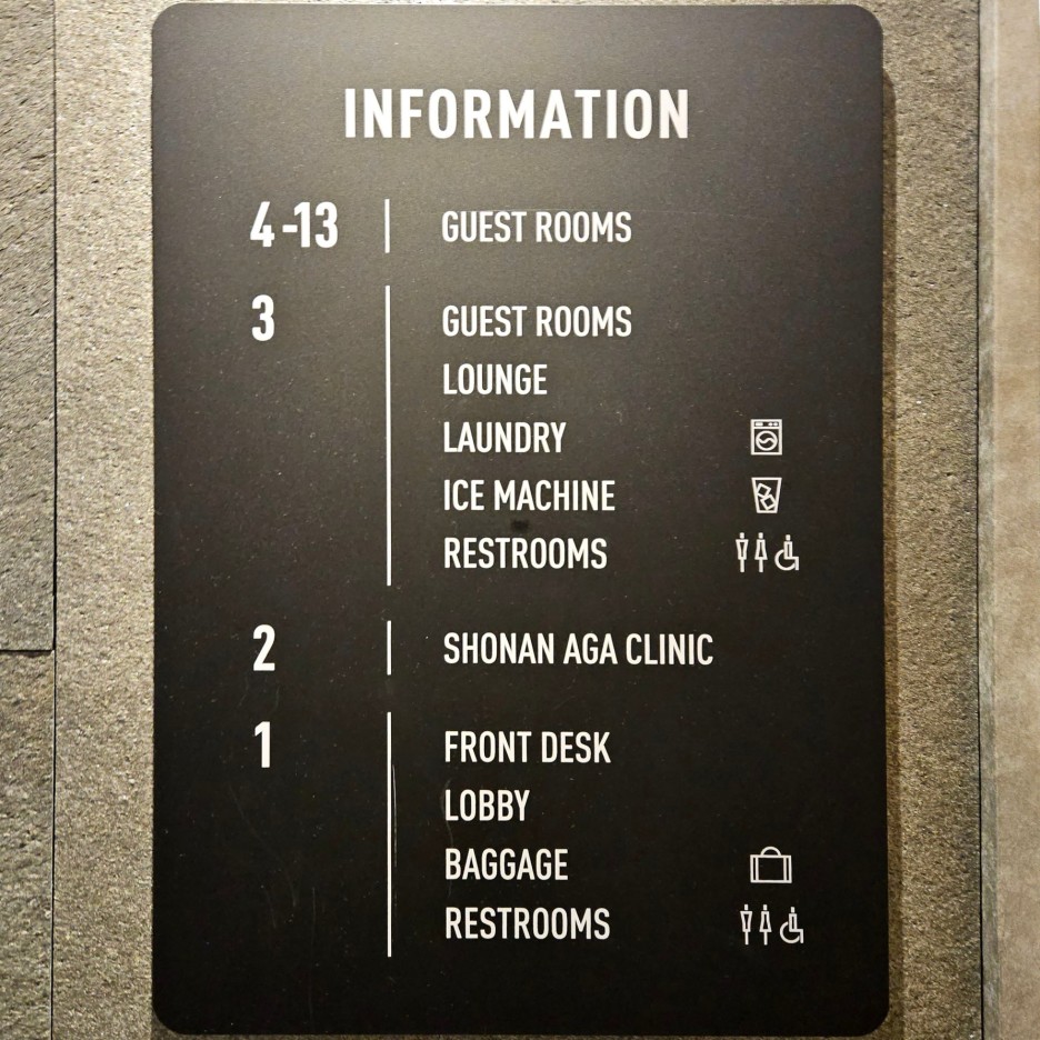 간단한 호텔 시설 안내표.
