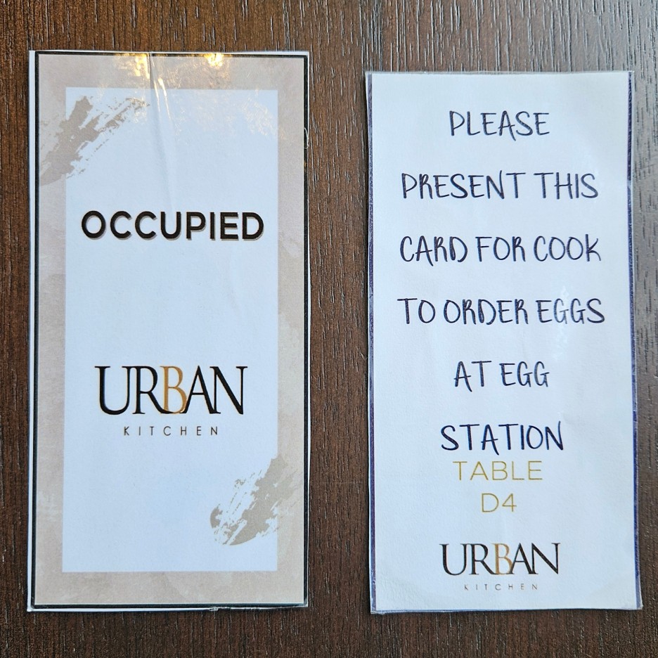 에그 스테이션에서 오믈렛이나 달걀 프라이 등을 주문하고 이 표식을 주고 오면 자리로 서빙을 해준다.