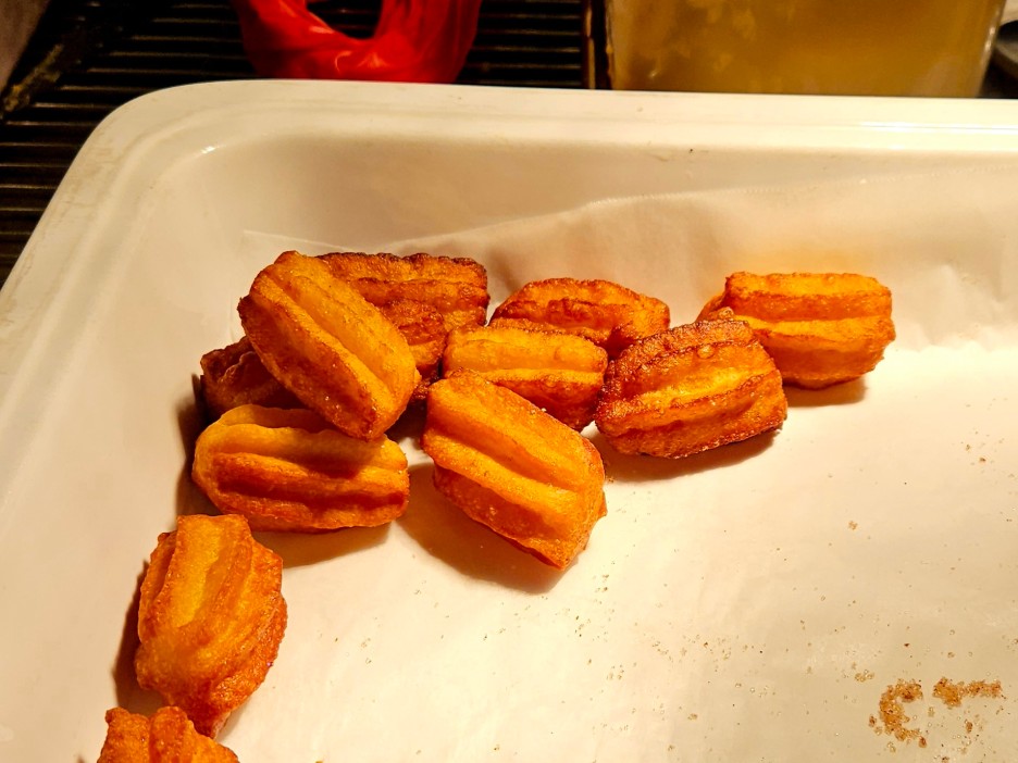 계속해서 추로스를 실시간으로 만들고 있었다. 갓 나온 것들은 꽤 맛있었다.