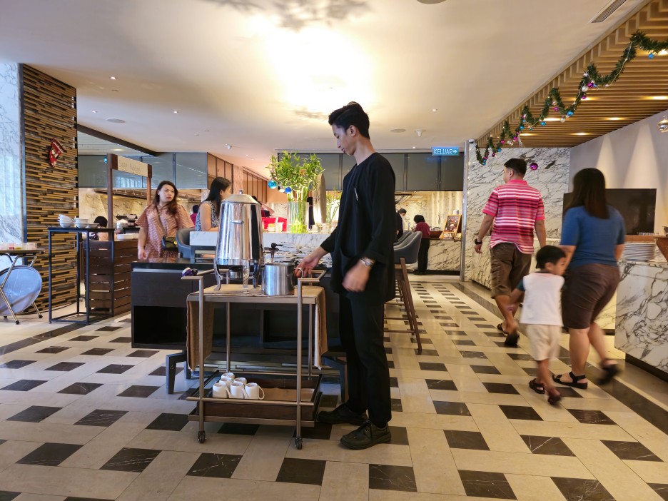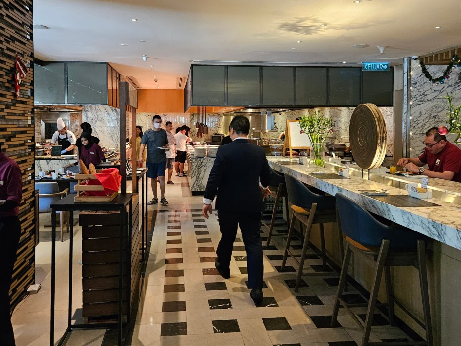 힐튼 코타키나발루의 조식당 어번 키친 Urban Kitche 은 1층 로비 옆에 위치하고 있다.