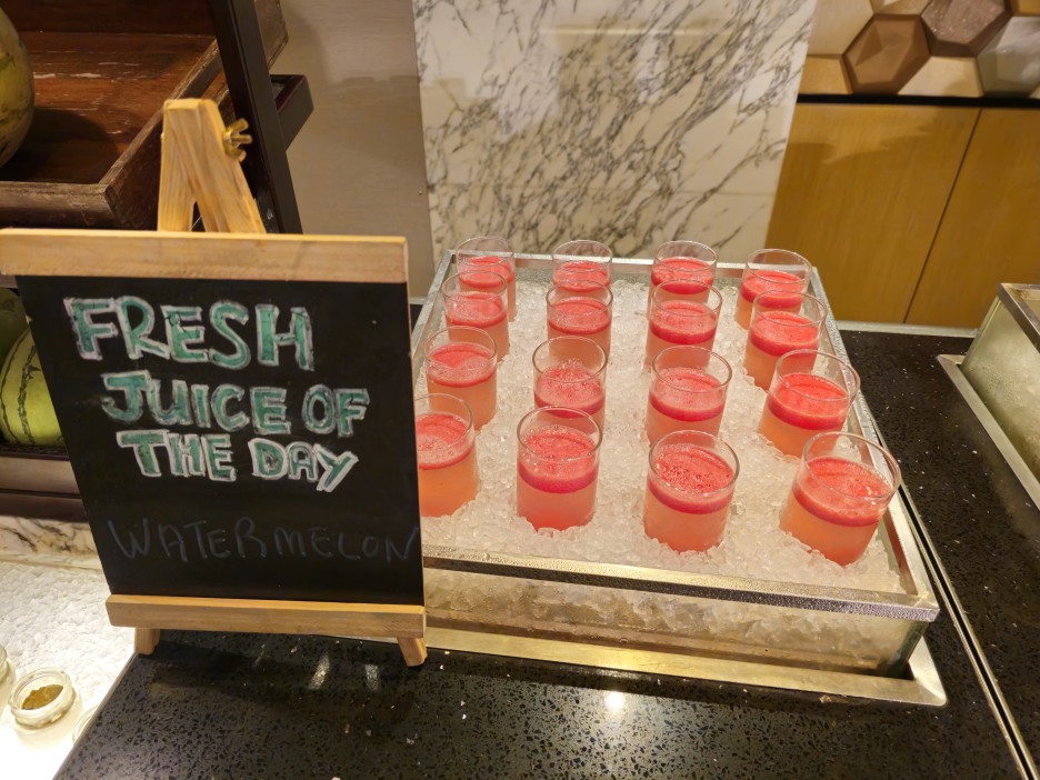 매일 바뀌는 신선한 착즙 주스였다. 주로 수박이 많이 나온 듯.