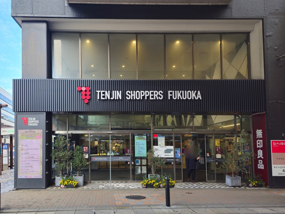 텐진역에서 동1a(東1a) 출구로 나오면 유명한 쇼핑몰 미나 텐진이 있고, 조금 더 북쪽으로 올라가면 텐진 쇼퍼즈라는 크지 않은 쇼핑몰이 있다. 다이소와 무인양품, 그리고 이온몰 마트가 입점해 있는 곳.