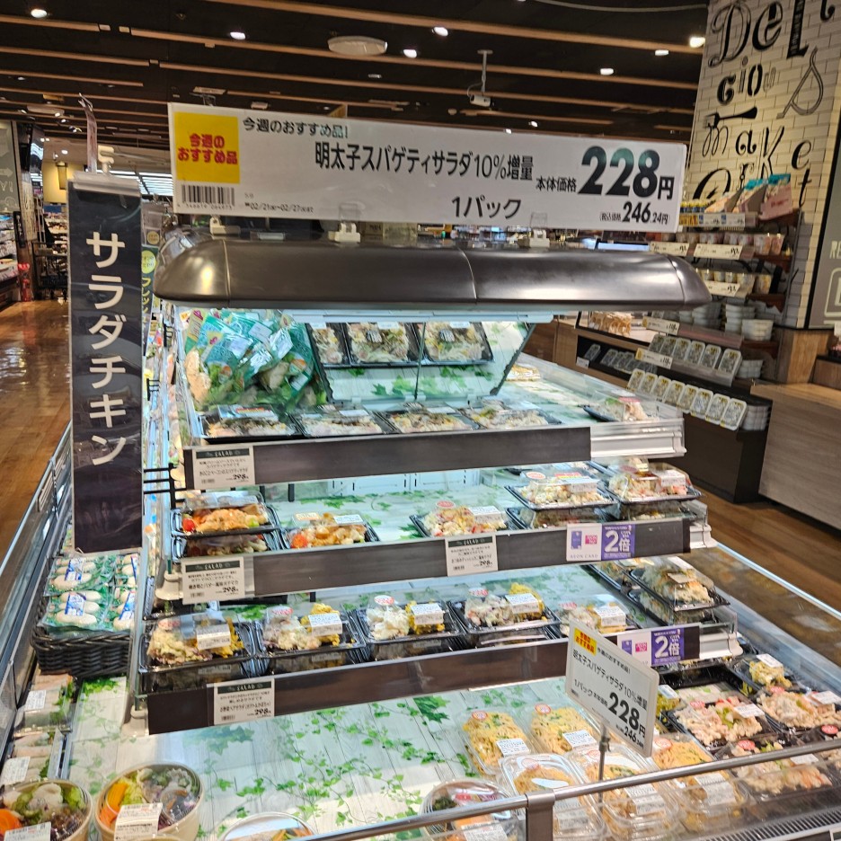 텐진에서 아침식사를 하려면, 시간상 호텔 조식을 먹거나 아니면 아침 일찍부터 영업을 하는 스키야나 요시노야 같은 체인점의 규동, 정식을 먹을 수 있는 야요이켄 등이 떠오른다. 물론 이런 메뉴들도 일본의 맛을 느끼기에 충분하고 맛도 있지만, 일본의 마트에서 더욱 신선하고 맛있는 즉석식품들을 먹어보는 것은 어떨까?