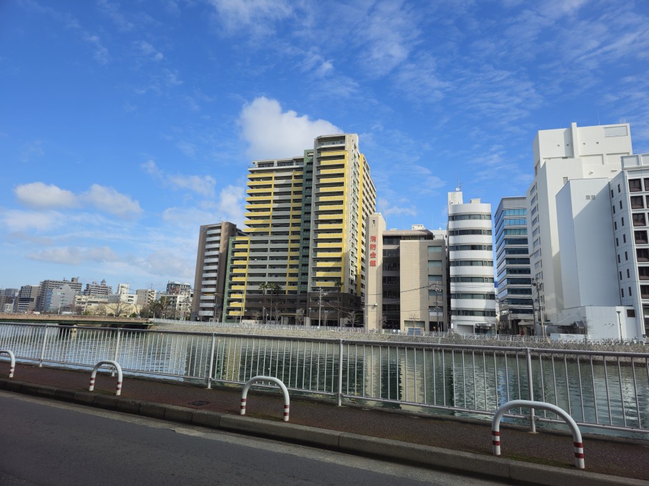 나카스 강변을 따라 쭈욱 걸어가면서 본 맑은 하늘이 기분을 좋게 만들어 주었다.
