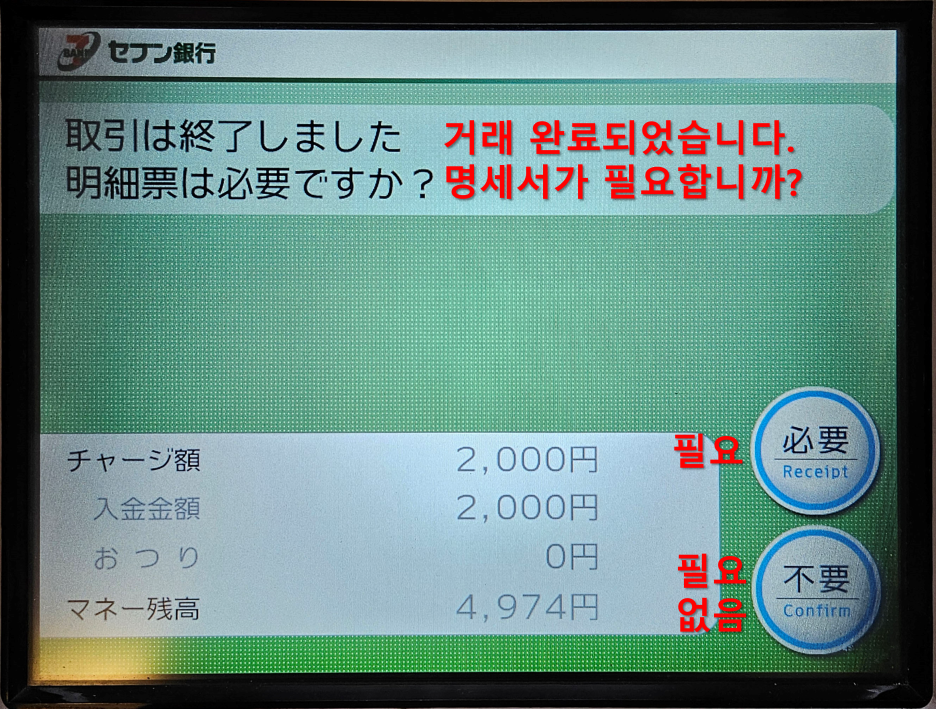 일본 세븐일레븐 편의점 또는 쇼핑몰 기타 등등에 있는 세븐 ATM를 사용해서 교통카드를 충전하는 방법.