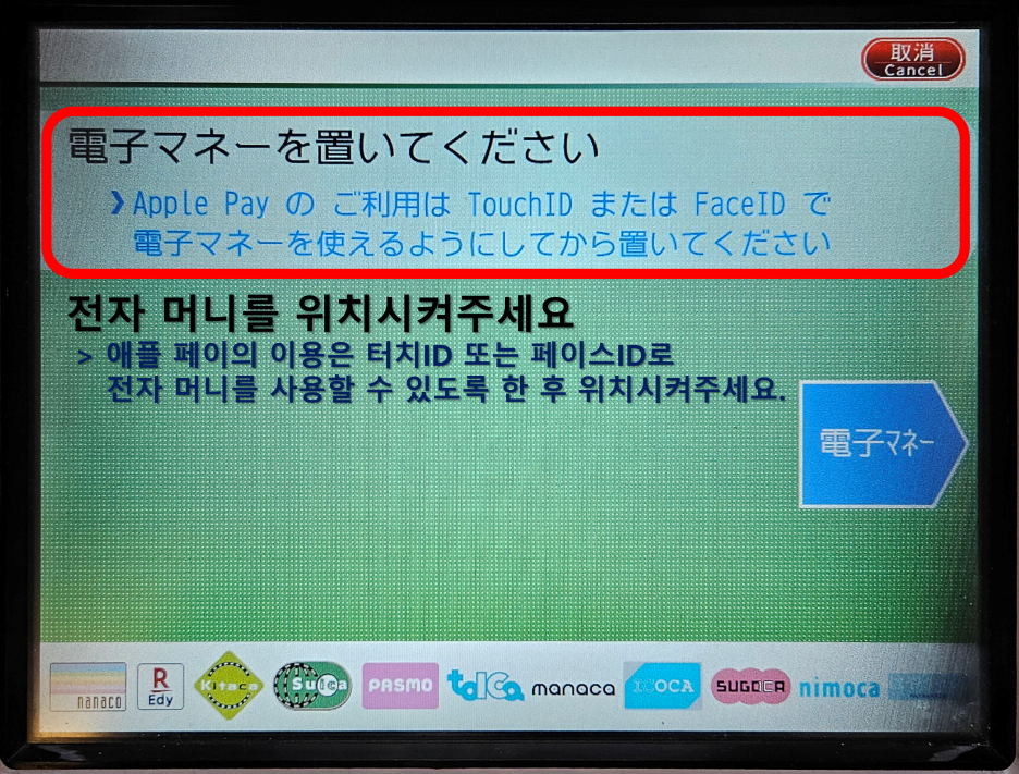 스이카, 파스모, 스고카, 이코카 등 모든 교통카드는 동일하게 진행하면 된다.