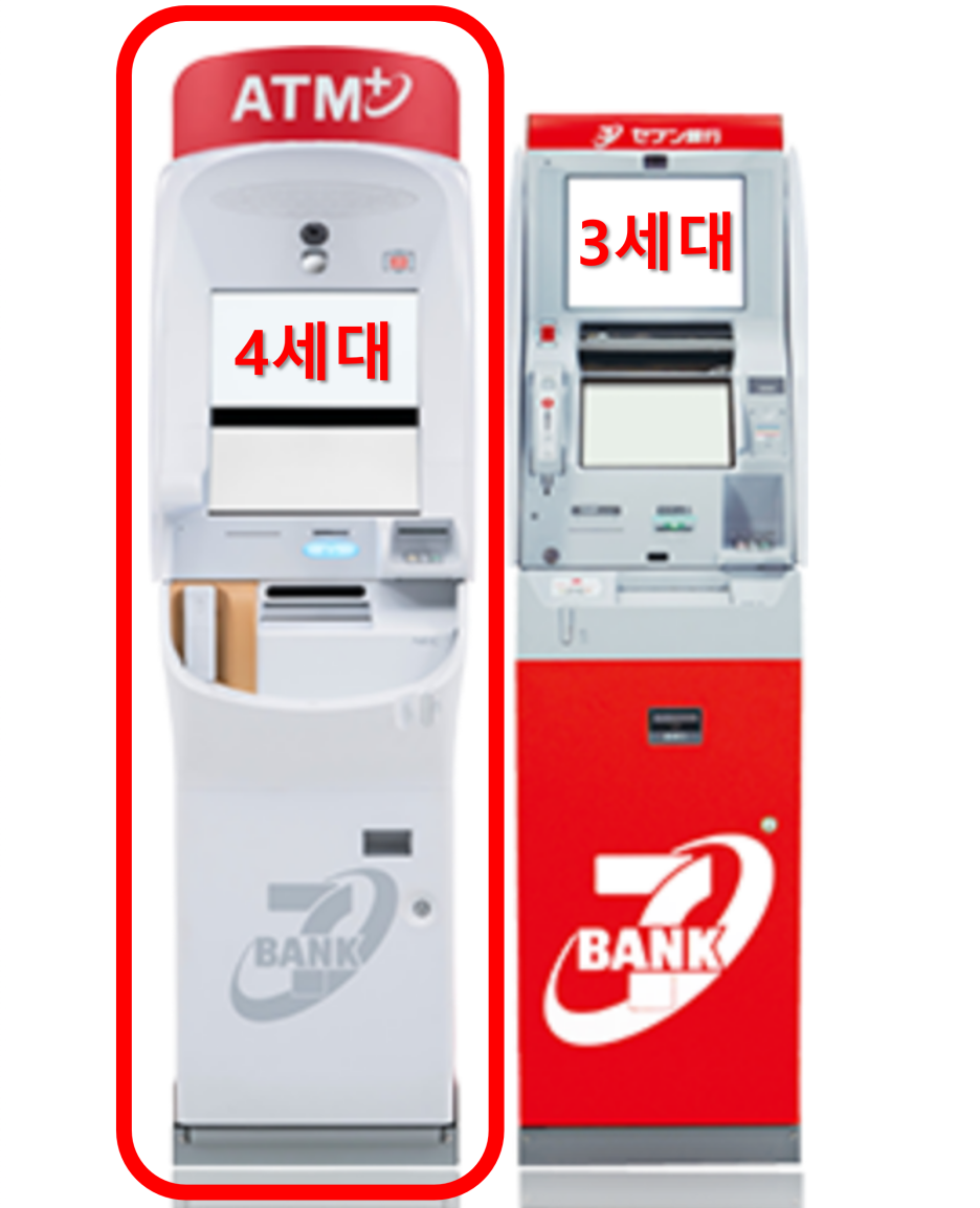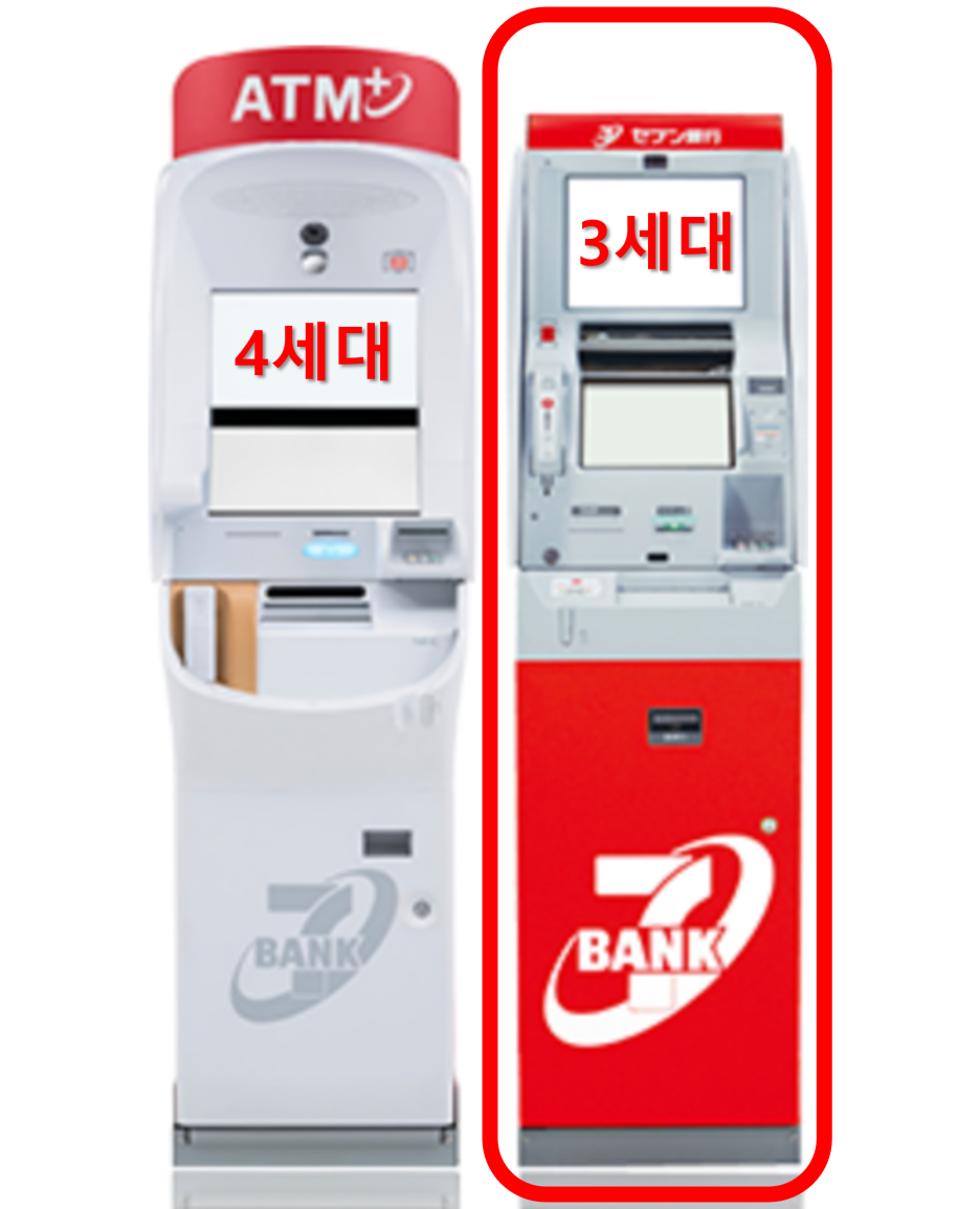ATM 기계는 보통 3세대와 4세대가 배치되어 있다. 아직까지는 3세대가 더 많이 배치되어 있다. 3세대와 4세대의 차이는 충전을 해야 하는 교통카드나 스마트폰 놓는 위치가 다르며, 화면 인터페이스가 조금 다른 정도밖에 없다.