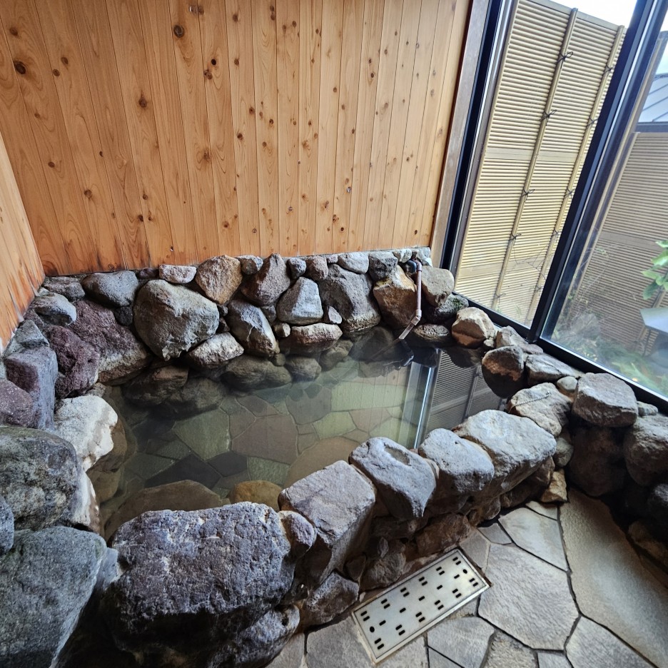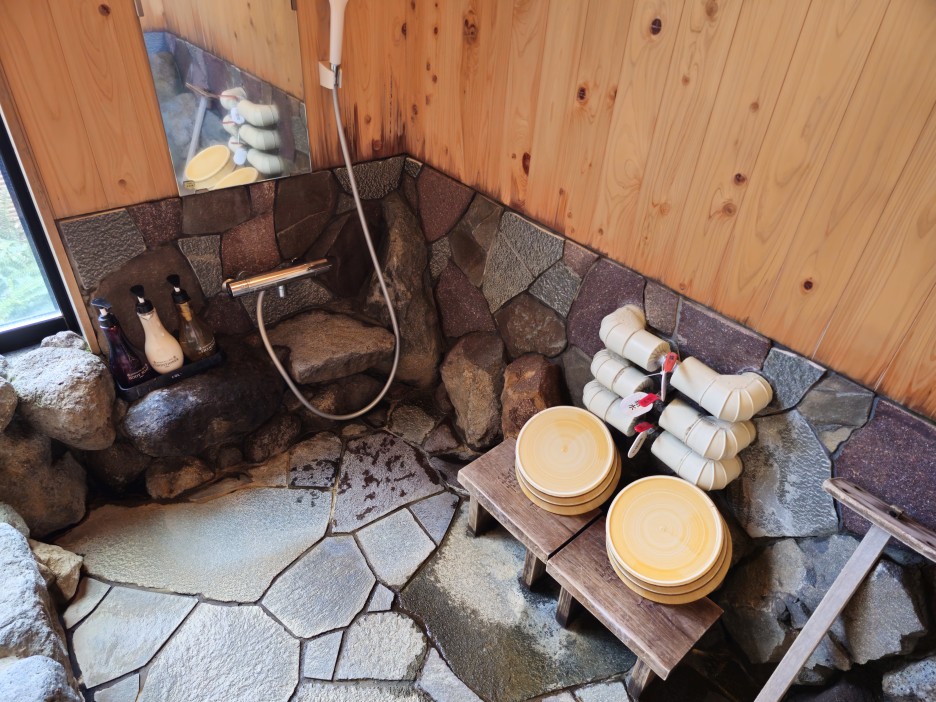 안쪽으로 보이는 개인탕. 이곳은 반노천탕이라 생각하면 될 듯하다. 창문을 열면 시원한 바람이 솔솔 들어온다.