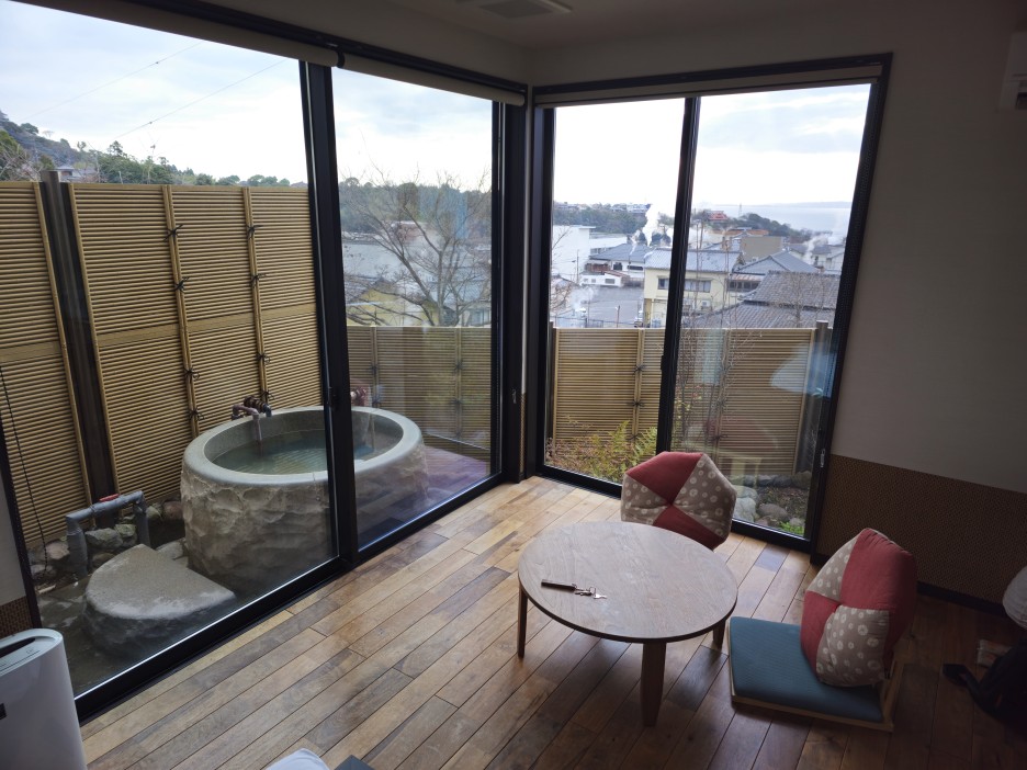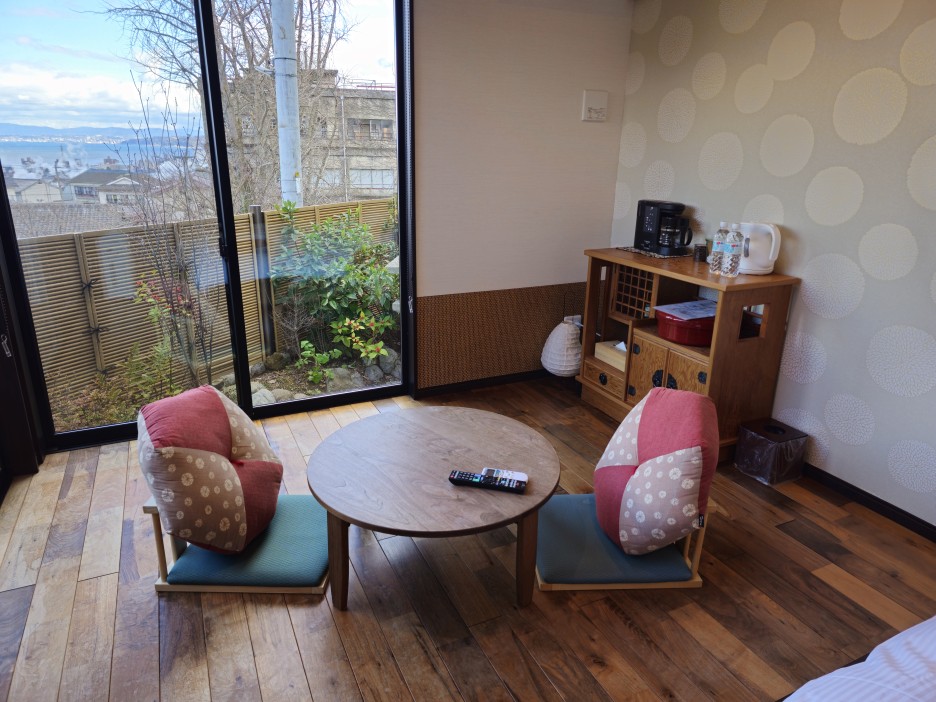 그렇다고, 호텔의 모습을 일부 가져온 일본의 최신 고급 료칸과도 결이 다르다. 객실 밖의 풍경은 그들 만큼 고급스럽지 않다. 전통 료칸과 최신 고급 료칸의 중간적인 느낌? 느낌이 그렇다는 것이지, 시설이나 서비스가 그들의 중간이라는 것은 아니다.