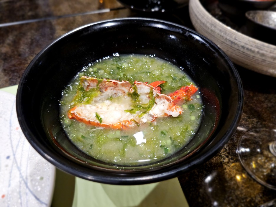 중간에 직원분이 오셔서 가져간 이세에비 머리로 끓인 된장국.