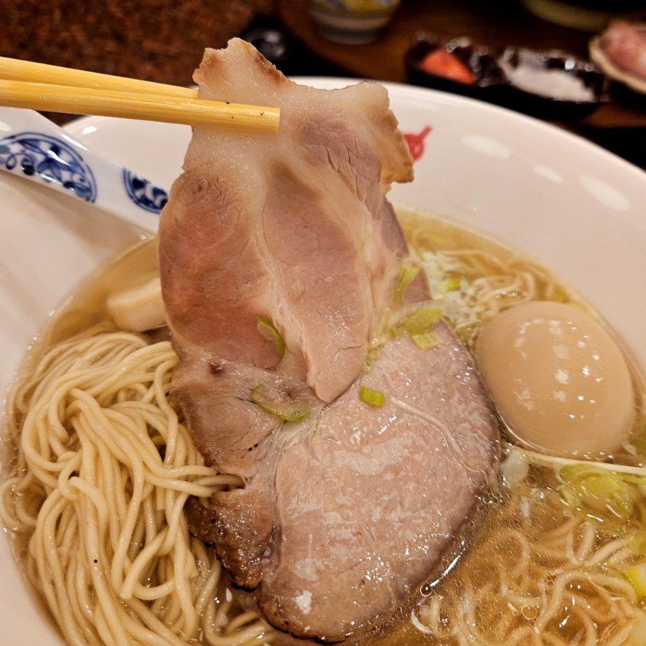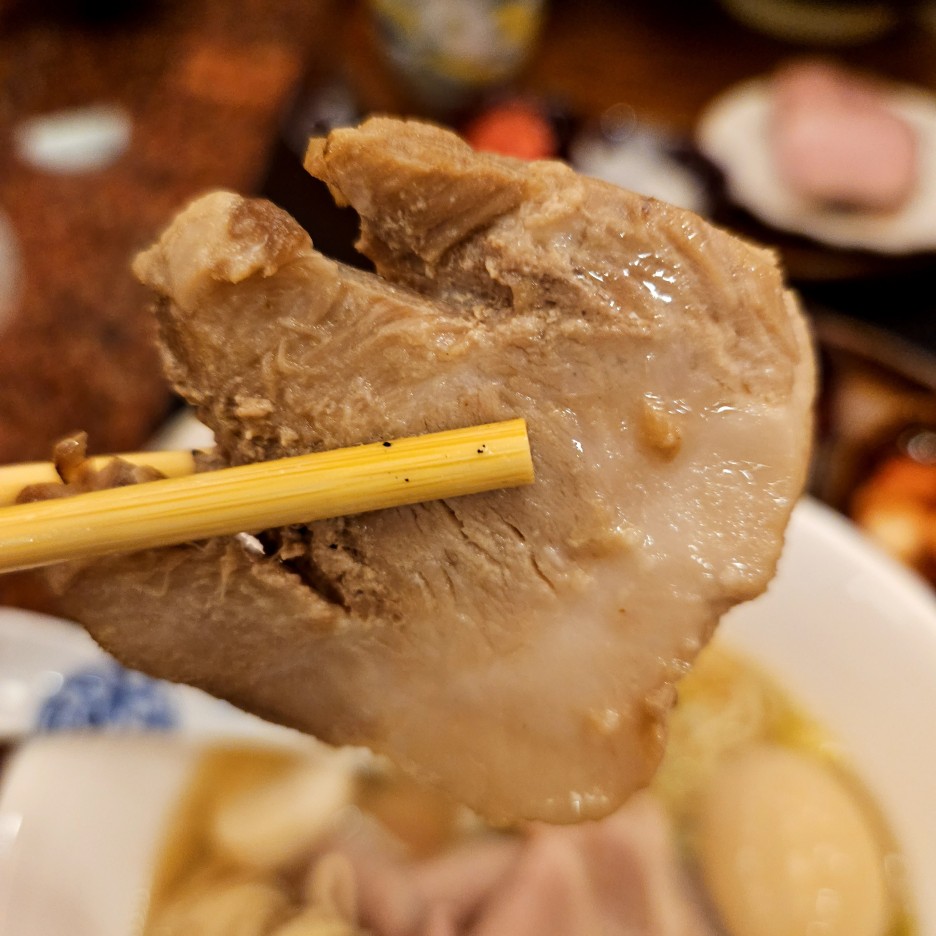 시오라멘에서 두 번째로 훌륭했던 수비드목살차슈. 조개 육수 기반의 국물과 아주 잘 어울렸고, 두껍지 않아 부드럽게 씹히는 맛은 아주 훌륭했다. 2장을 주니 행복했다.
