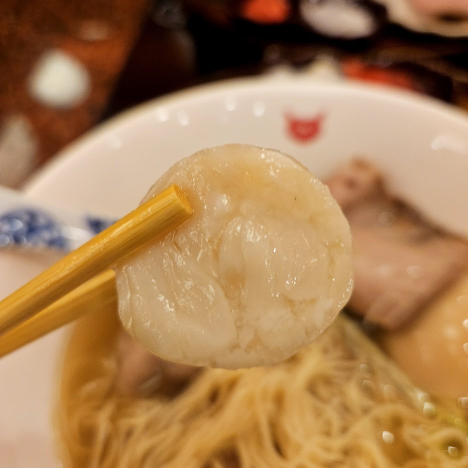 요찌무의 카이 시오라멘에서 가장 훌륭했던, 가리비 관자. 토핑으로 들어가 있는 가리비 관자는 아주 부드러워 맛있게 먹을 수 있었다.