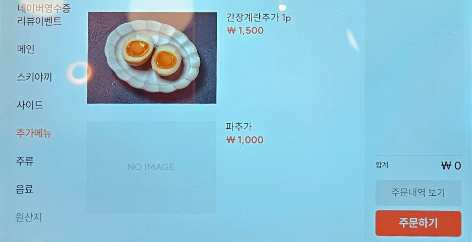 아 참, 이 반숙 달걀은 기본으로 포함되어 있지는 않고, 추가 주문을 하거나 네이버 영수증 리뷰 이벤트에 참여하면 답례로 받을 수 있다. (1개 1,500원)