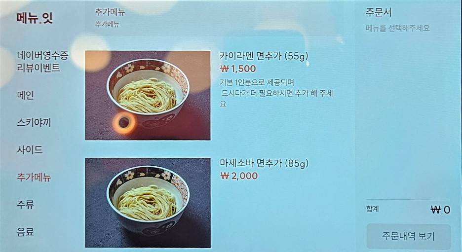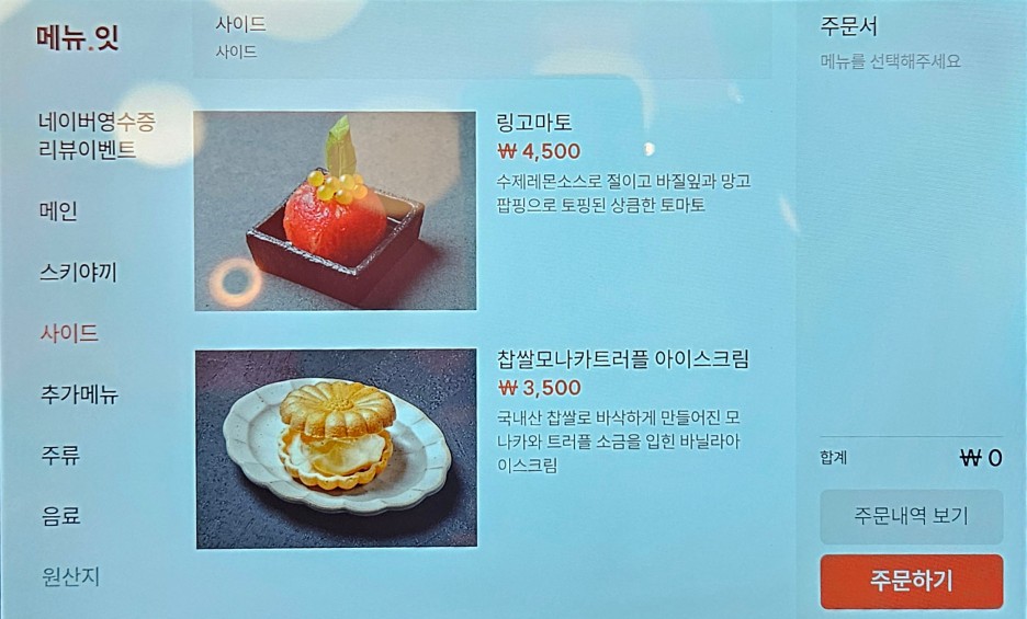 주문과 결제는 테이블에 있는 태블릿으로 가능하다. 결제까지 한 번에 가능해서 편했다.