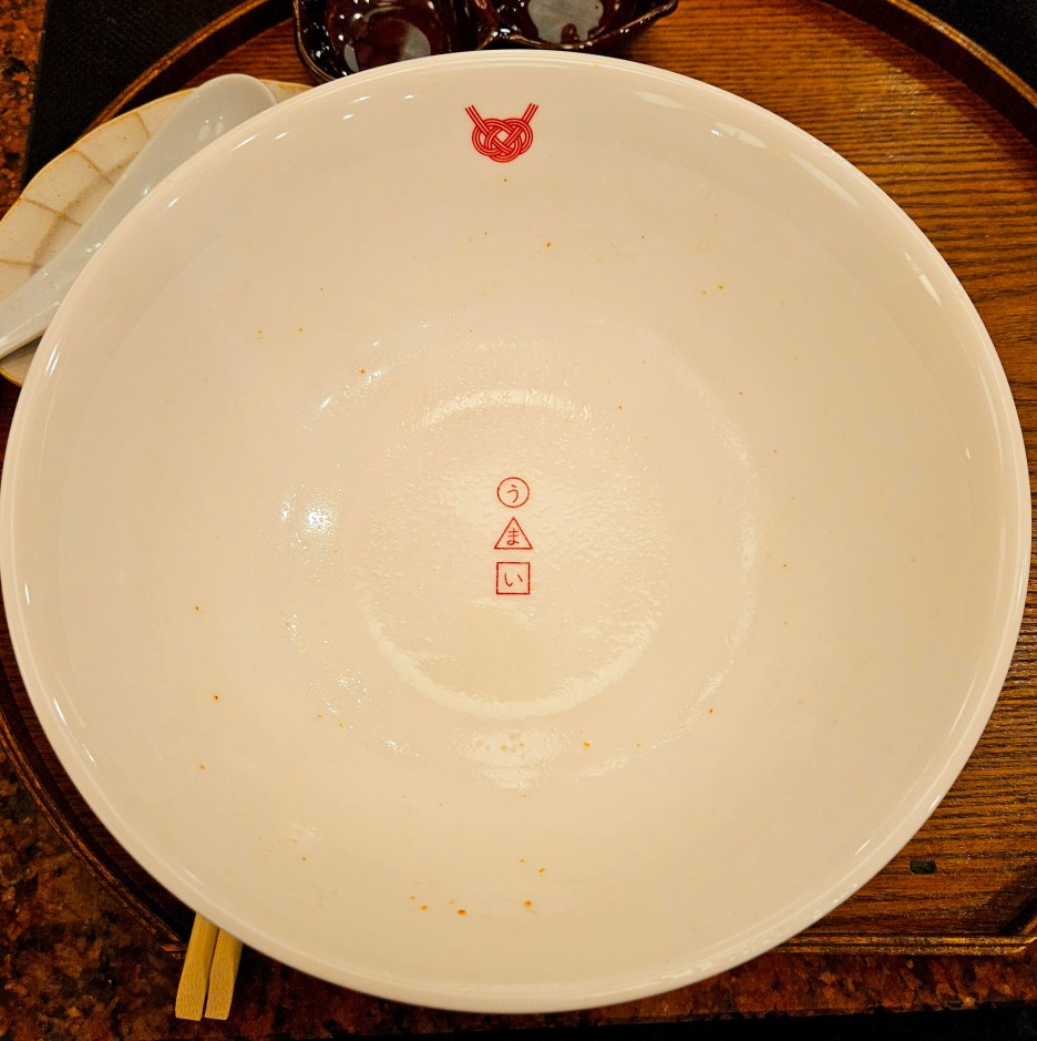 밥도 말아서 국물까지 완전히 끝장을 냈다. 그랬더니 나오는 그릇의 밑바닥에 적힌, 우마이.