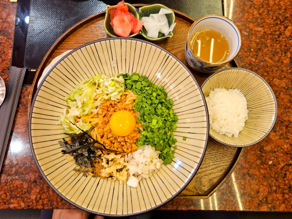 마제소바에 생강 절임, 무 절임과 공깃밥을 먼저 제공해 준다. 라멘도 그렇고 마제소바도 모두 미리 공깃밥을 주는 시스템은 감사하다.