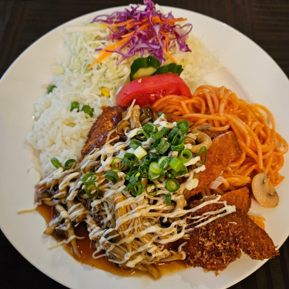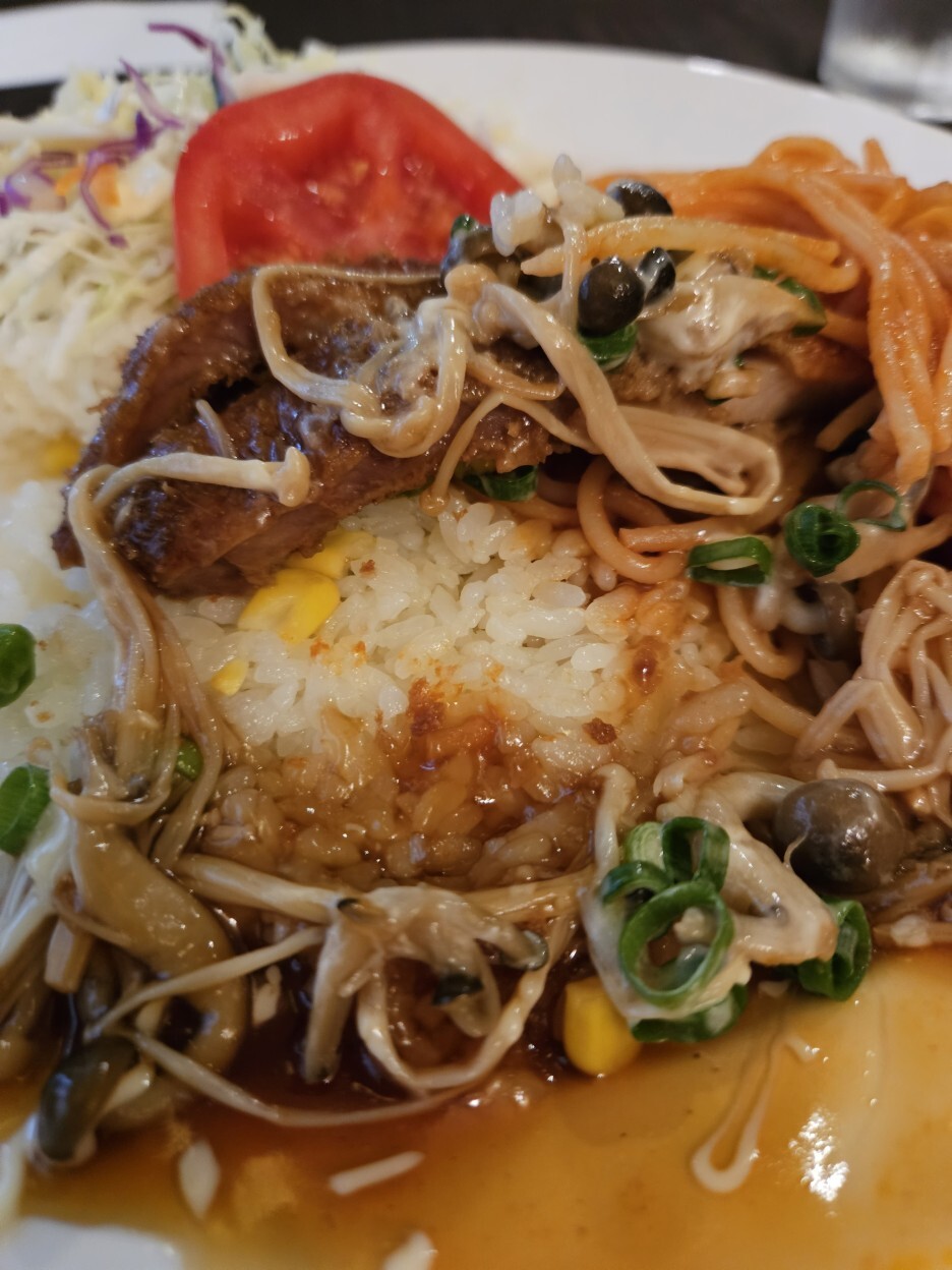 나왔다. 나의 지팡구토루코라이스. 정석대로 볶음밥, 돈까스, 스파게티이다.