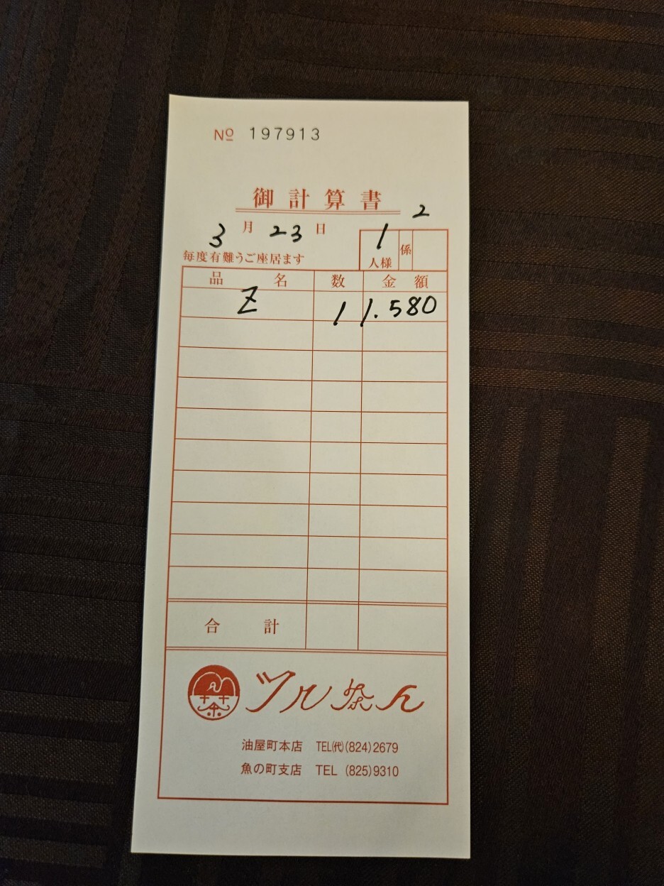 그리고 받아든 청구서. 1,580엔. 앞의 Z는 지팡구의 Z.