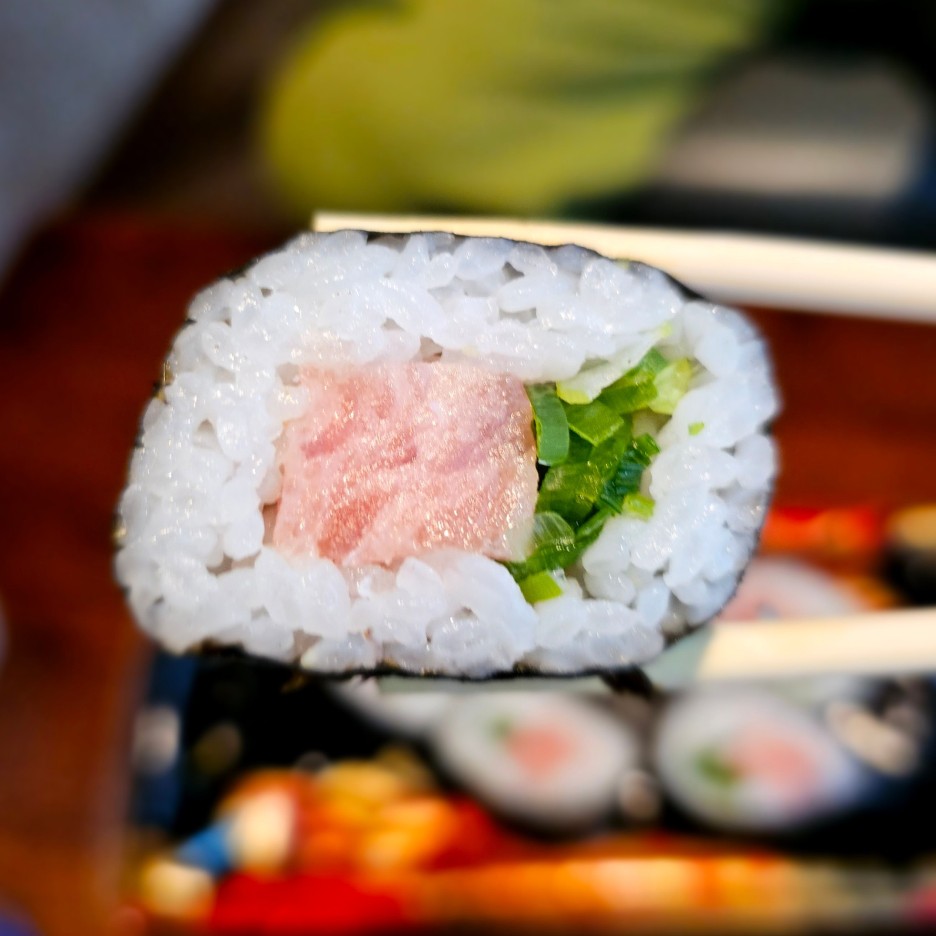 다진 참치살이지만 부드럽고 고소하다. 식초로 간이 된 밥과 파가 아주 잘 어울리고, 마지막으로 김의 향이 화룡점정.