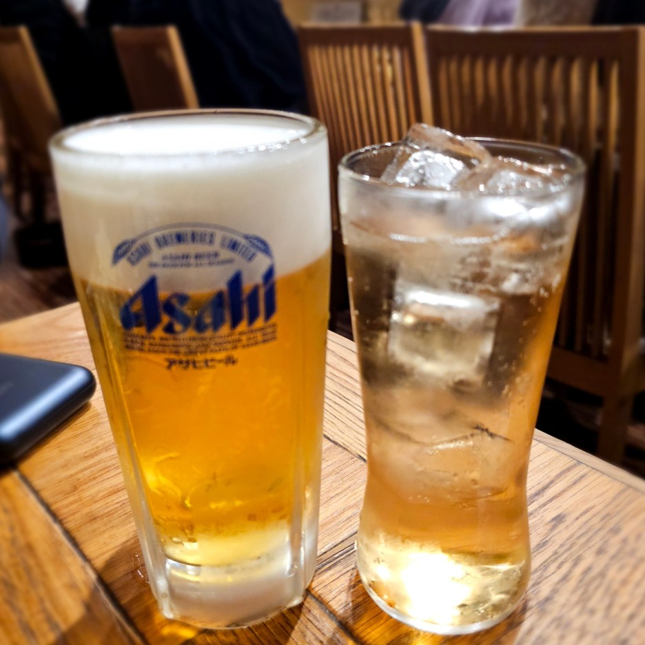 시원해 보이는 아사히 슈퍼드라이 생맥주와 진저 하이볼을 주문했다.