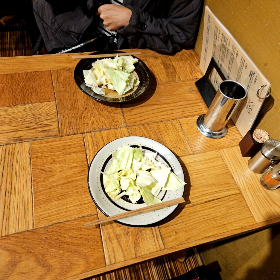 오토시는 보통의 야키토리 집처럼 양배추 한 사발. 일본의 양배추는 더 달달해서 아주 좋다.