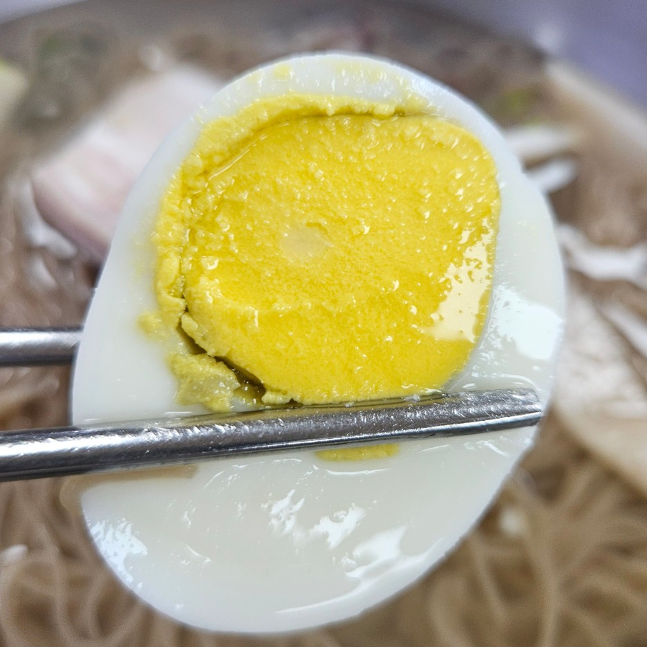 물냉면에 함께 들어가 있는 달걀은 노른자가 육수를 침범하기 전에 얼른 먹는 것이 상책.