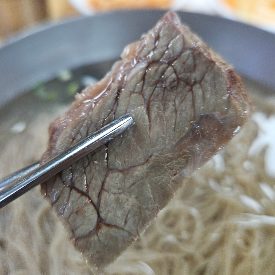돼지고기 수육은 먼저 먹어서, 남은 소고기 수육과 면을 함께 먹어본다.
