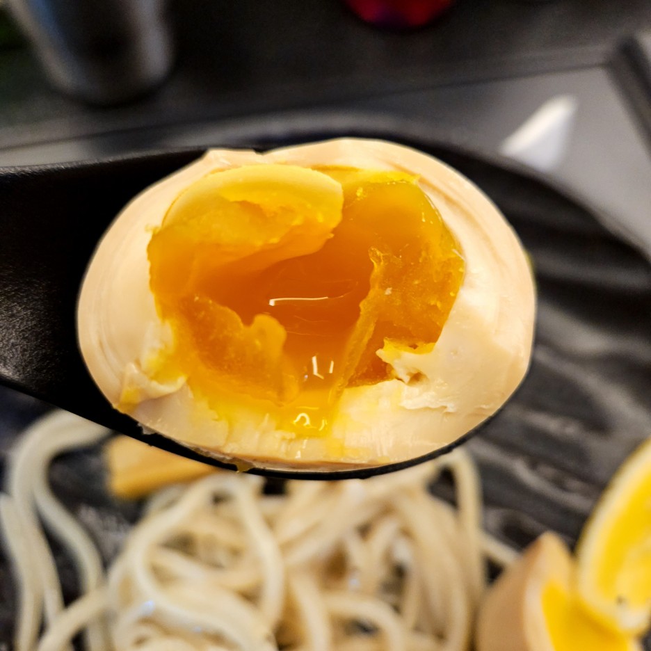 함께 제공된 멘마는 쫄깃하고 맛있다. 삶은 달걀도 아주 적절한 반숙의 모습. 훌륭하다.