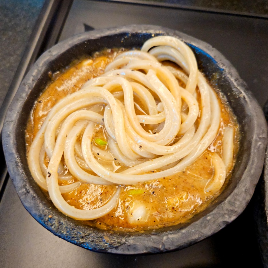 누군가에는 살짝 거부감이 있을 수 있는 생선들의 향이 고소하게 올라오면서, 끈적한 수프가 면에 가득하다.