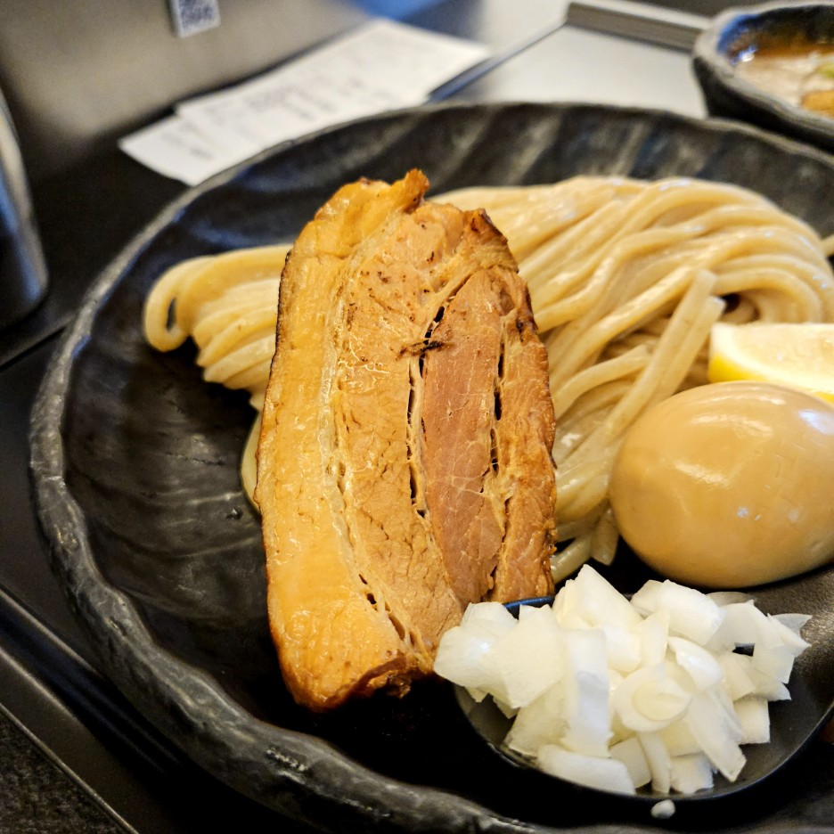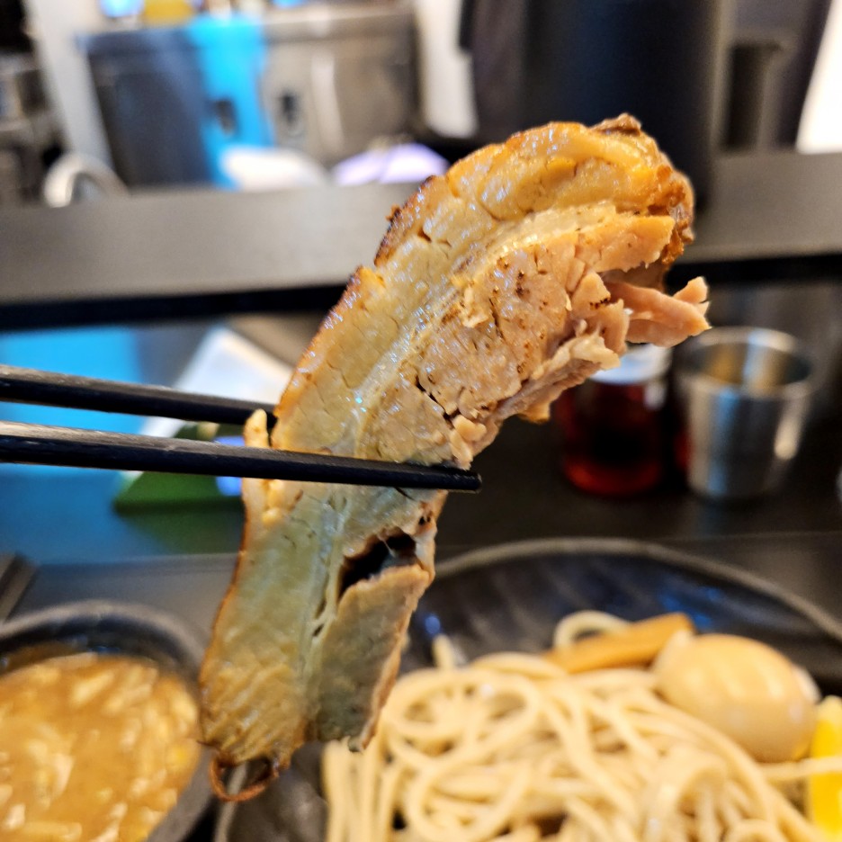 그래, 바로 이 맛이 교카이 츠케멘의 매력. 처음에는 어려울지 모르겠지만 두입만 먹으면 왠지 가속 당기는 맛. 평양냉면 같은 계열이랄까.