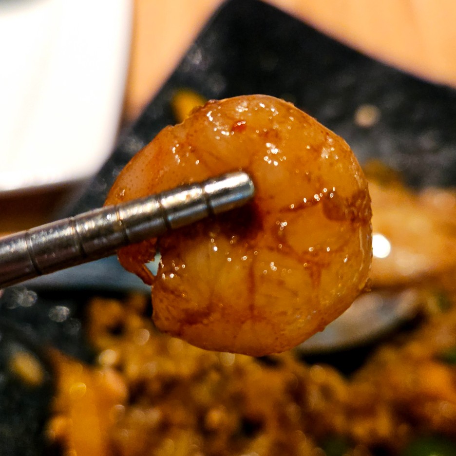 아마도 대왕오징어인듯하지만, 쫄깃한 오징어 살의 식감이 좋았고, 칵테일 새우겠지만 새우도 먹을만했다.