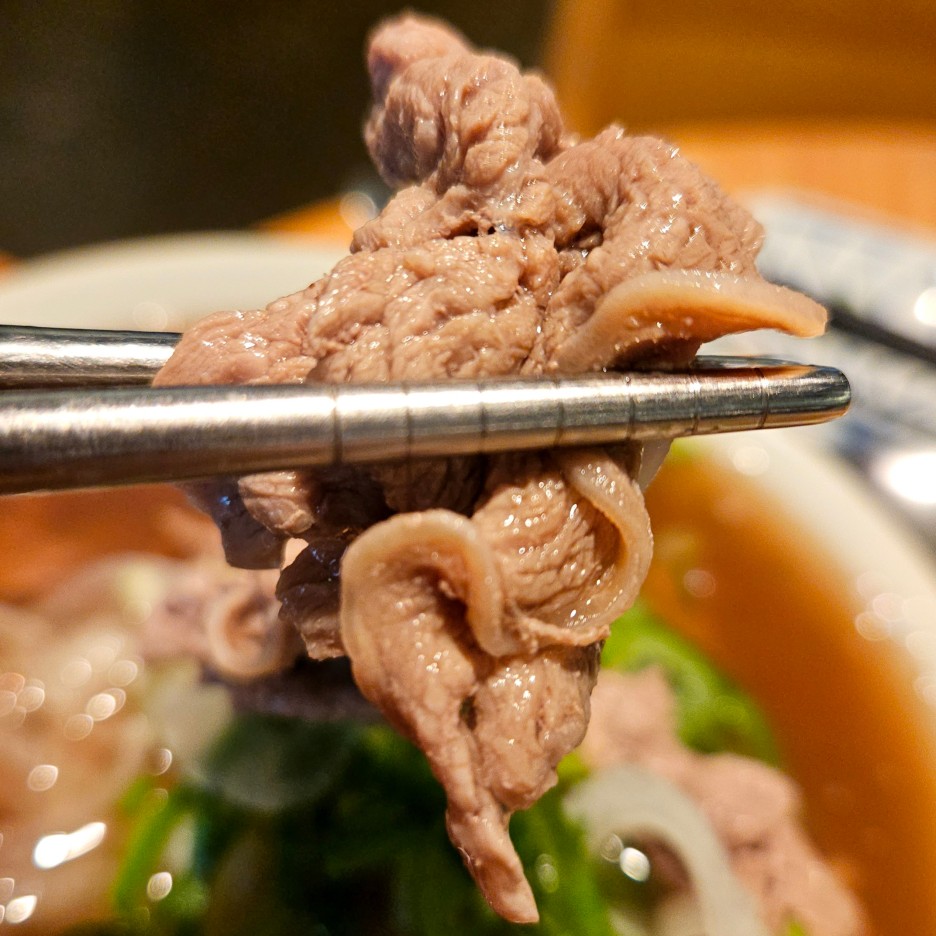 쌀국수 국물은 아주 시원하다. 고기 향이 강하게 올라오며, 아주 짙은 맛과 깊은 맛.