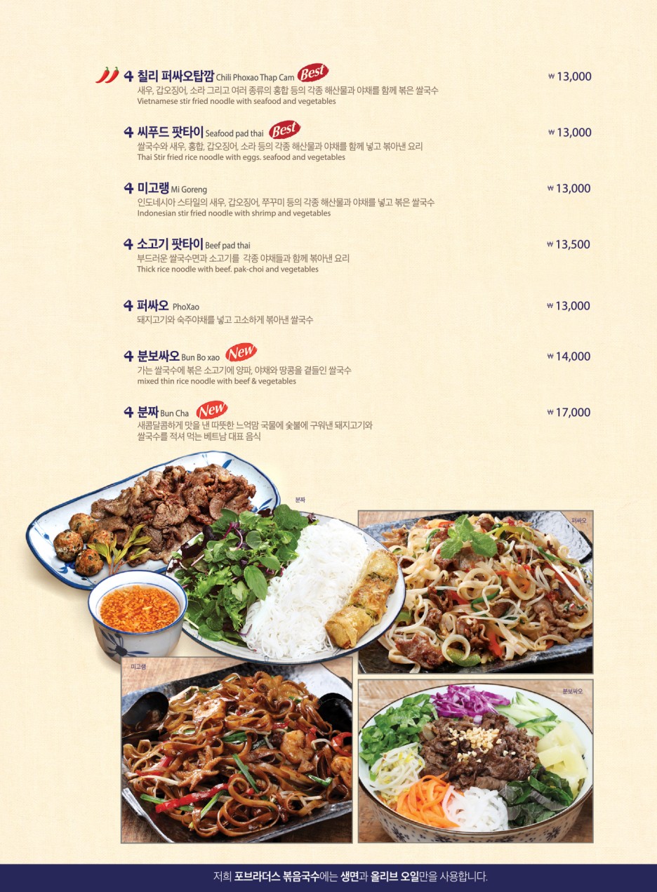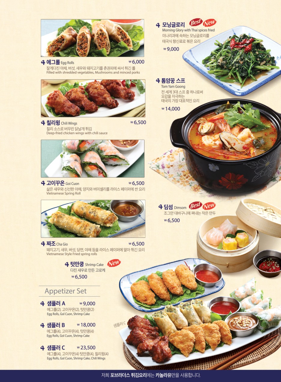 베트남, 중국, 인도네이사, 중국 등 지역의 요리 중 시그니처라 할 수 있는 메뉴들을 제공 하고 있었다.