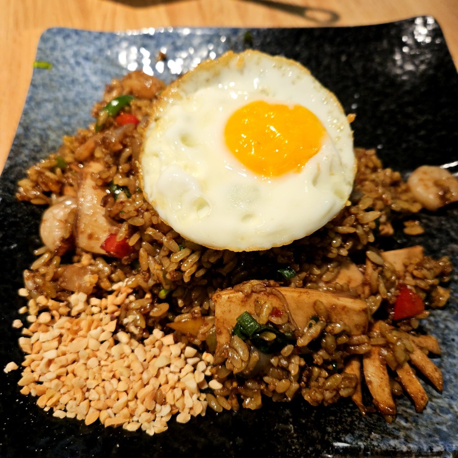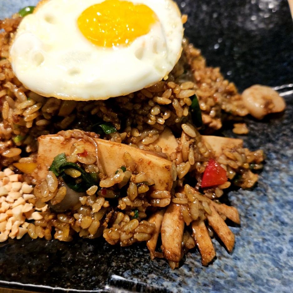 달걀 프라이도 거의 튀겨진 느낌으로 인도네시아 느낌이 물씬 나는 나시고렝.
