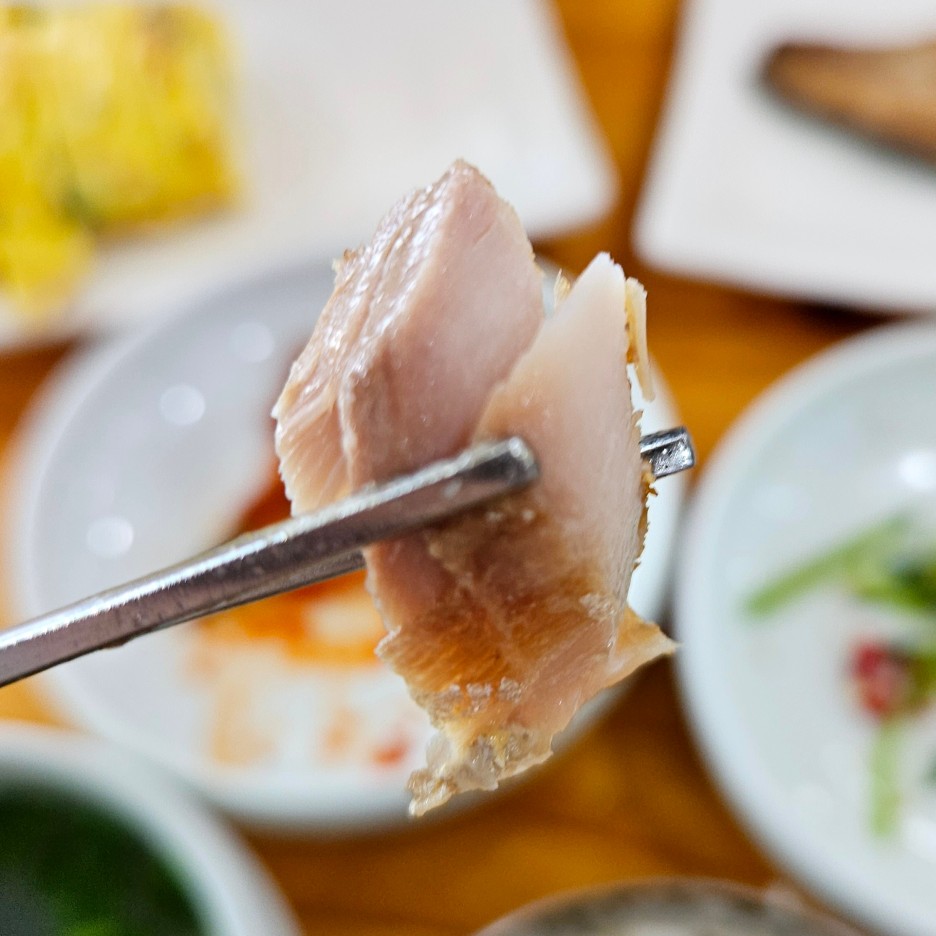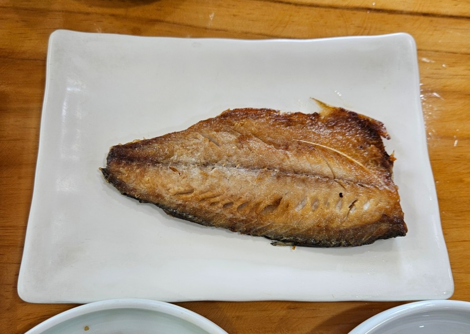 잘 구워진 고등어구이. 반찬으로 나오는 녀석이다 보니, 바로 구워서 제공한 것은 아닌 듯했다. 살짝 식어 있는 느낌. 하지만, 크기도 작지 않았고 기름기도 있어 괜찮게 먹을 수 있었다.