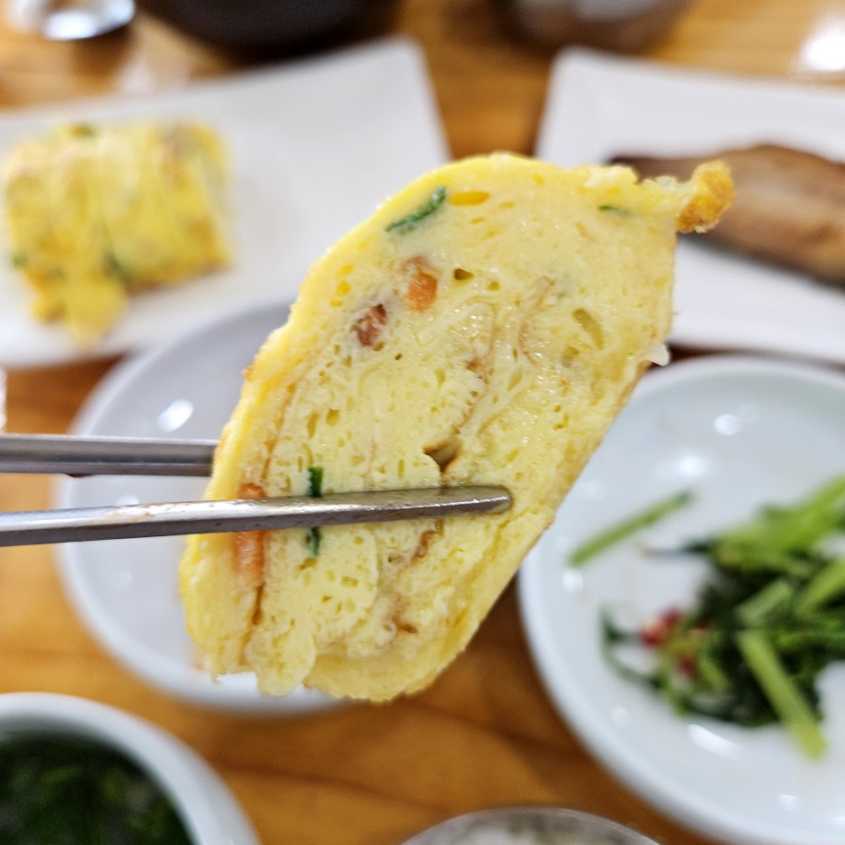그리고, 메인급 반찬인 무한리필의 달걀말이. 통통하게 두께에 상당히 양도 많았다.