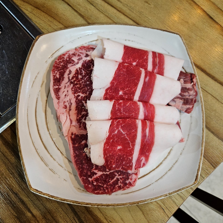 고기는 정말 신선해 보인다. 윤기도 좔좔 흐르면서 중간중간 살짝 보이는 지방 부위가 고소함을 더욱 끌어오리는 느낌.