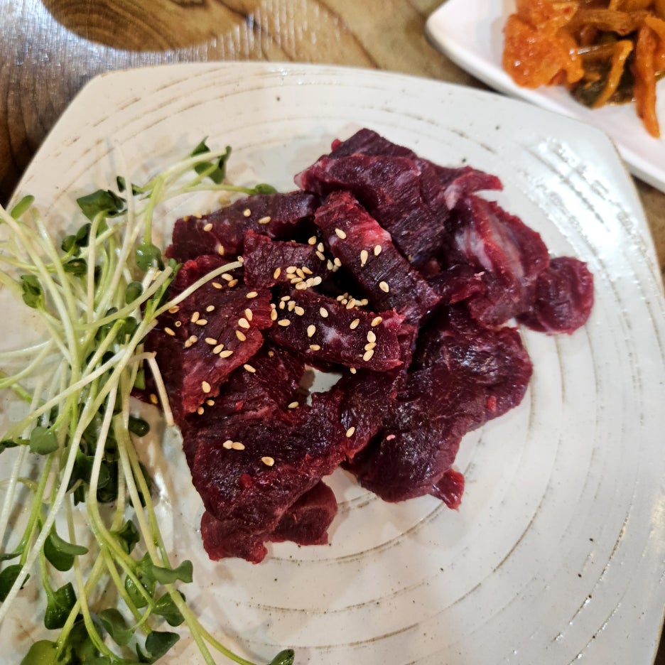 뭉티기 60g, 구이 150g의 양으로 그램 수로 보면 양이 적을 것 같지만, 충분히 배가 불러지는 구성이 된다.