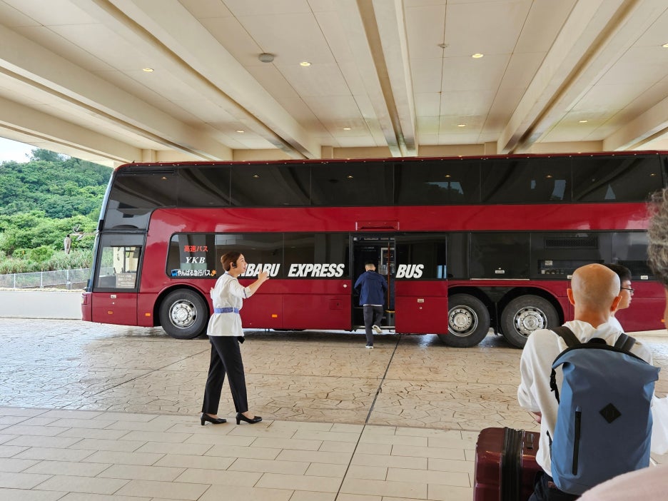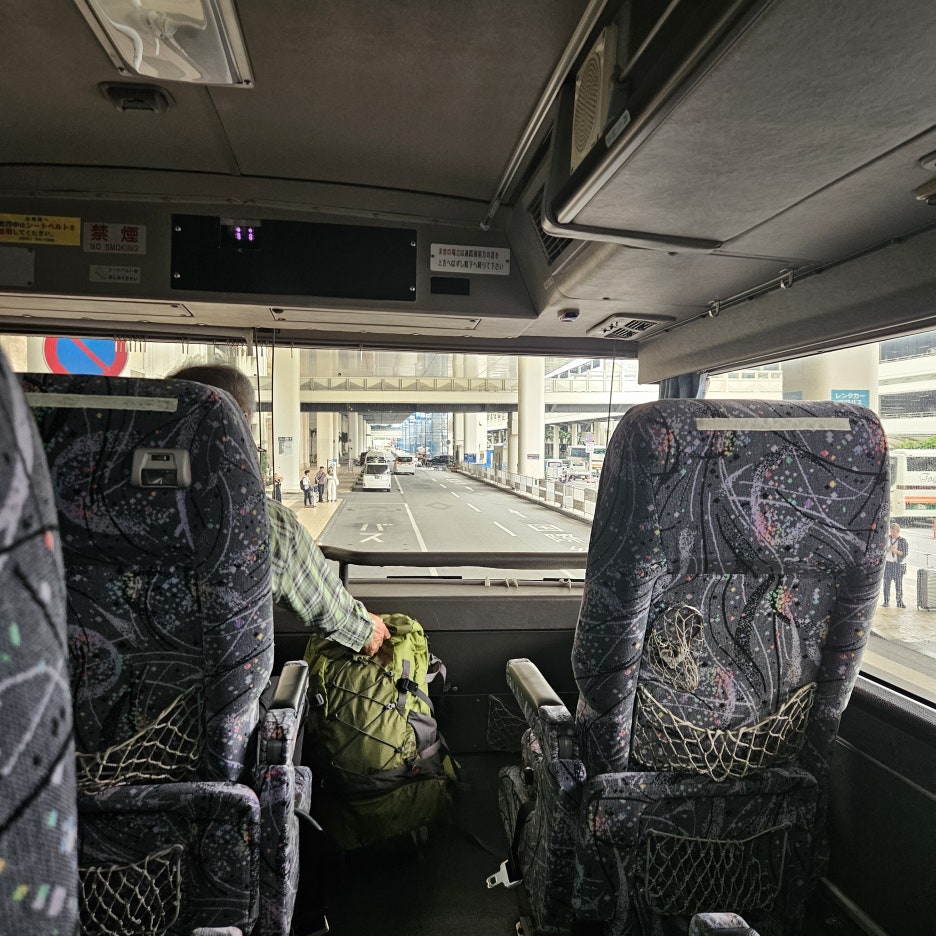 역시 시간은 칼같이 지키는 일본. 12시 54분에 버스가 도착했다. 2층 버스다. 1층에는 짐만 싣고 2층에만 좌석이 있는 형태.