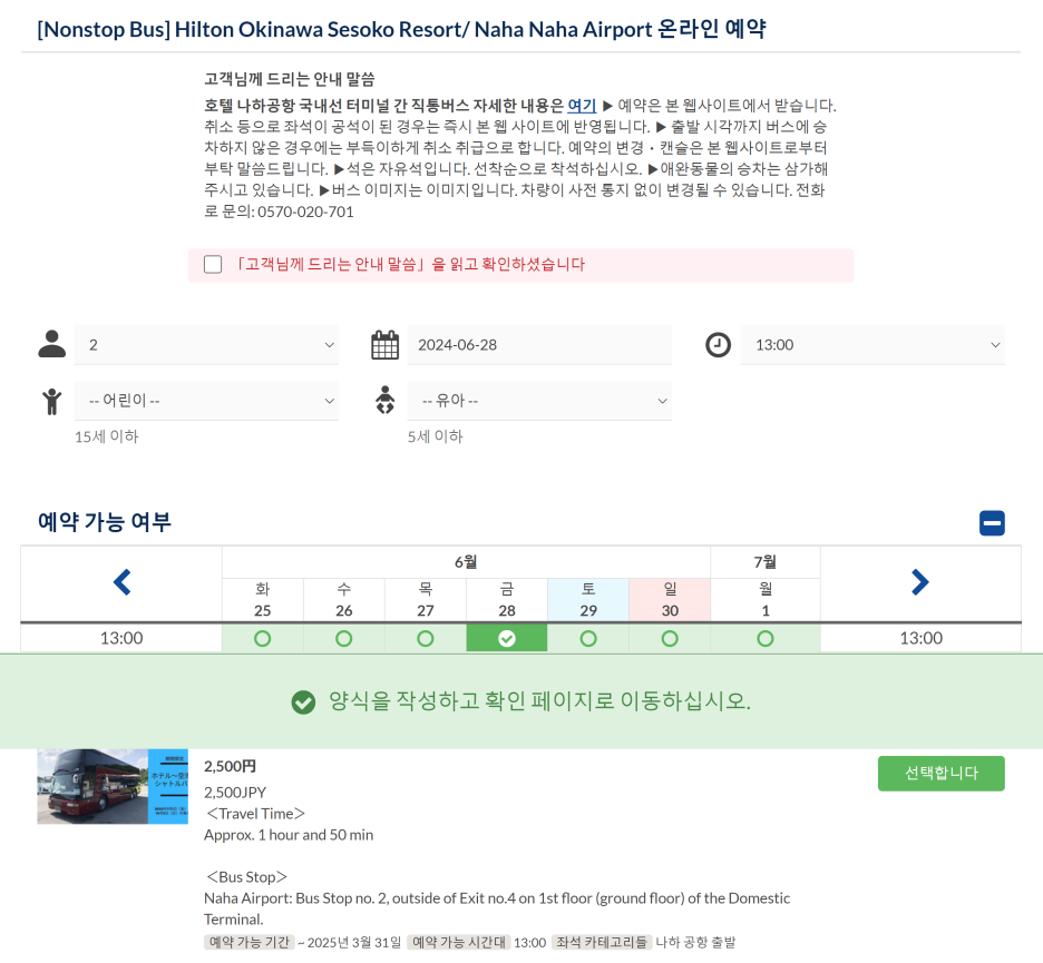 다행히, 직행 셔틀버스는 예약 시 요금을 내지 않고,
